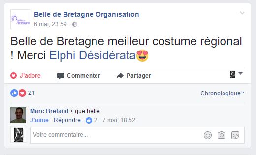 Je vous annonce que mon costume Elphi Désidérata, Delphine Le Blet crée pour Carol'anne Bretaud, pour l élection Belle de France - Beauty Pageant 2017 à gagné le concours du meilleur costume régional.